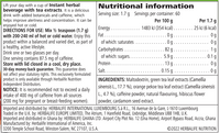 Mix ½ teaspoon (approx 1.7g) with 250ml of hot or cold water. Instant Herbal Beverage is a refreshing drink enjoyed alone or with meals and contains only 6.2 calories per serving.